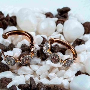 Gold Hoop Earrings with Pink & White Diamonds