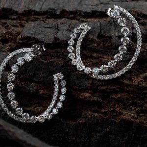 Modern Diamond Castella Hoop Earrings with White gold