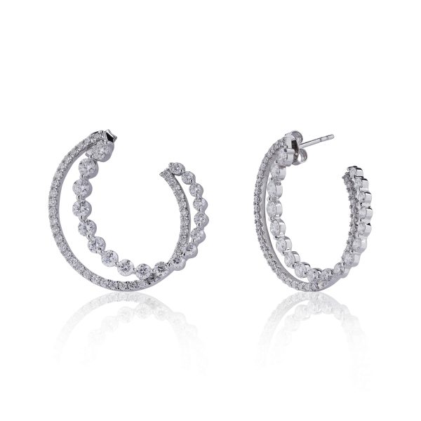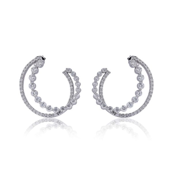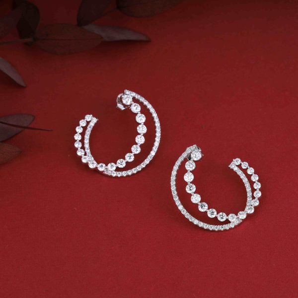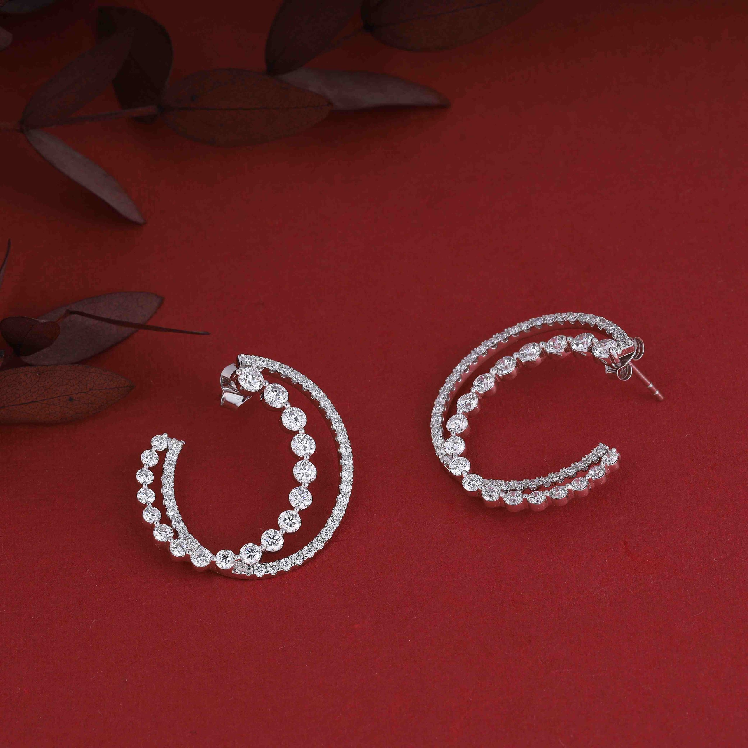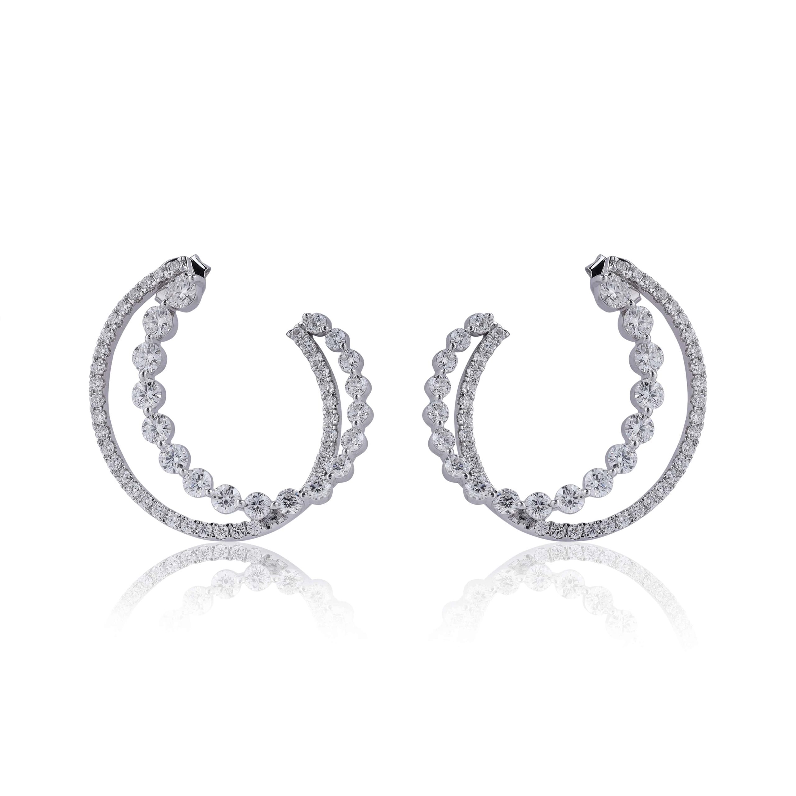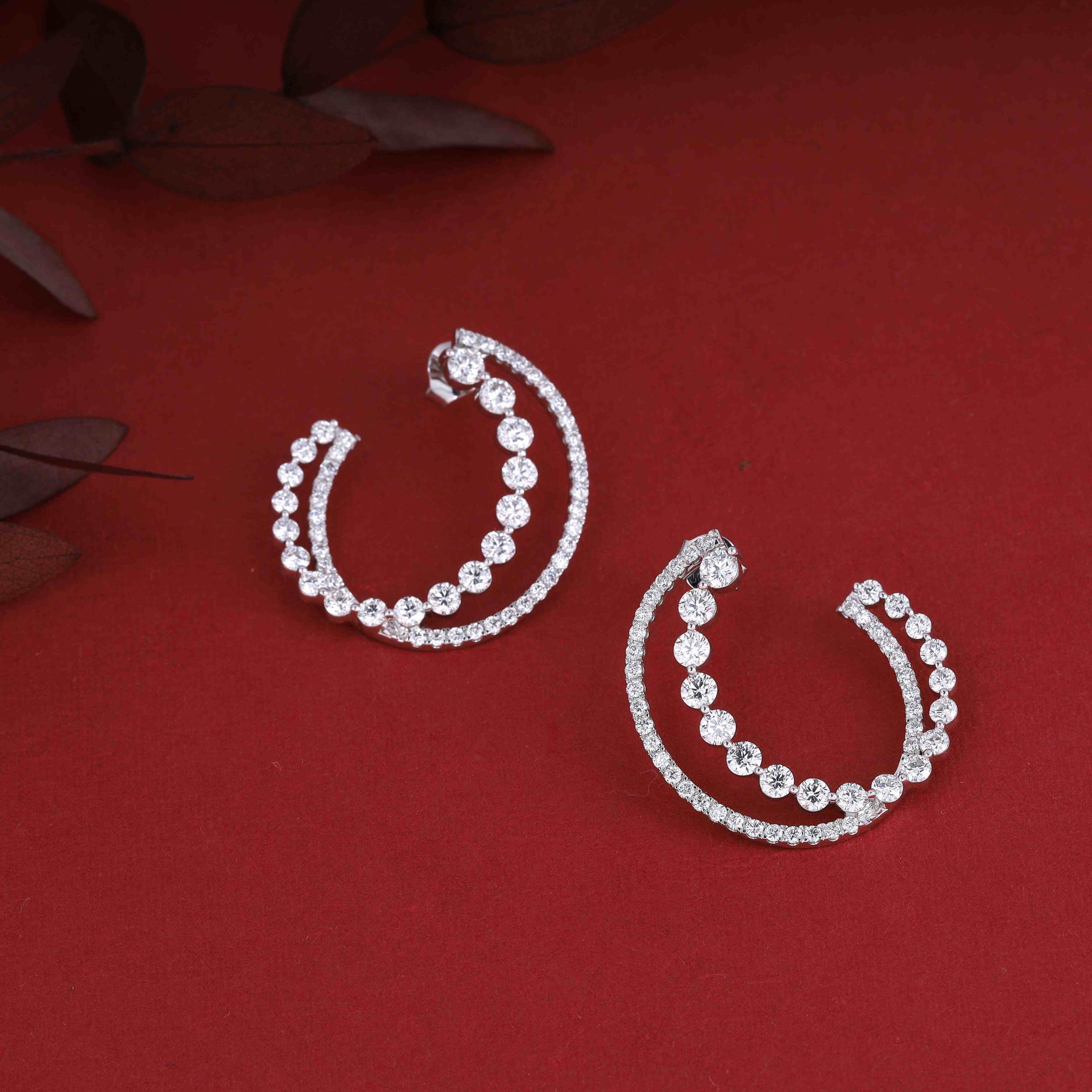 Adorned with sparkling round diamonds, these hoops exude timeless elegance and sophistication, adding a touch of celestial radiance to your special day. Let these exquisite earrings be the perfect finishing touch to your bridal look, symbolizing eternal love and beauty.