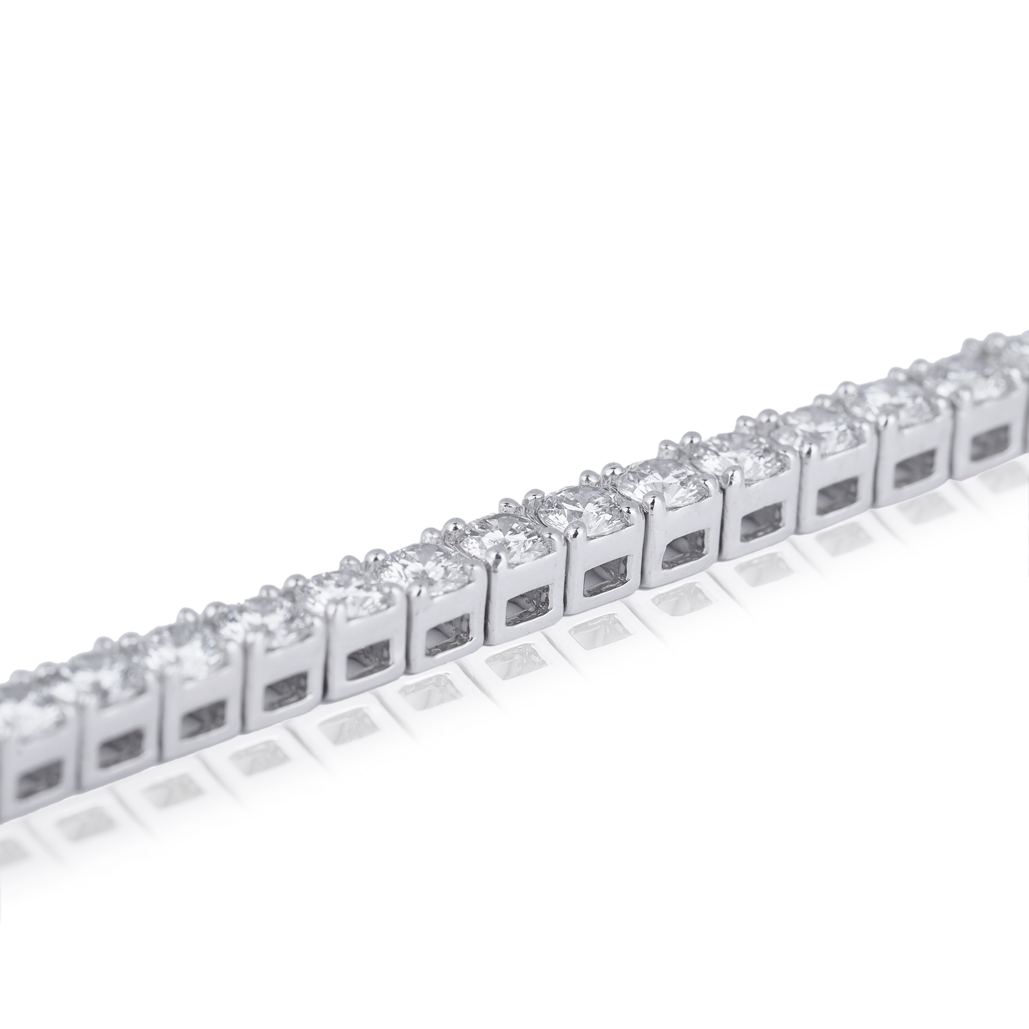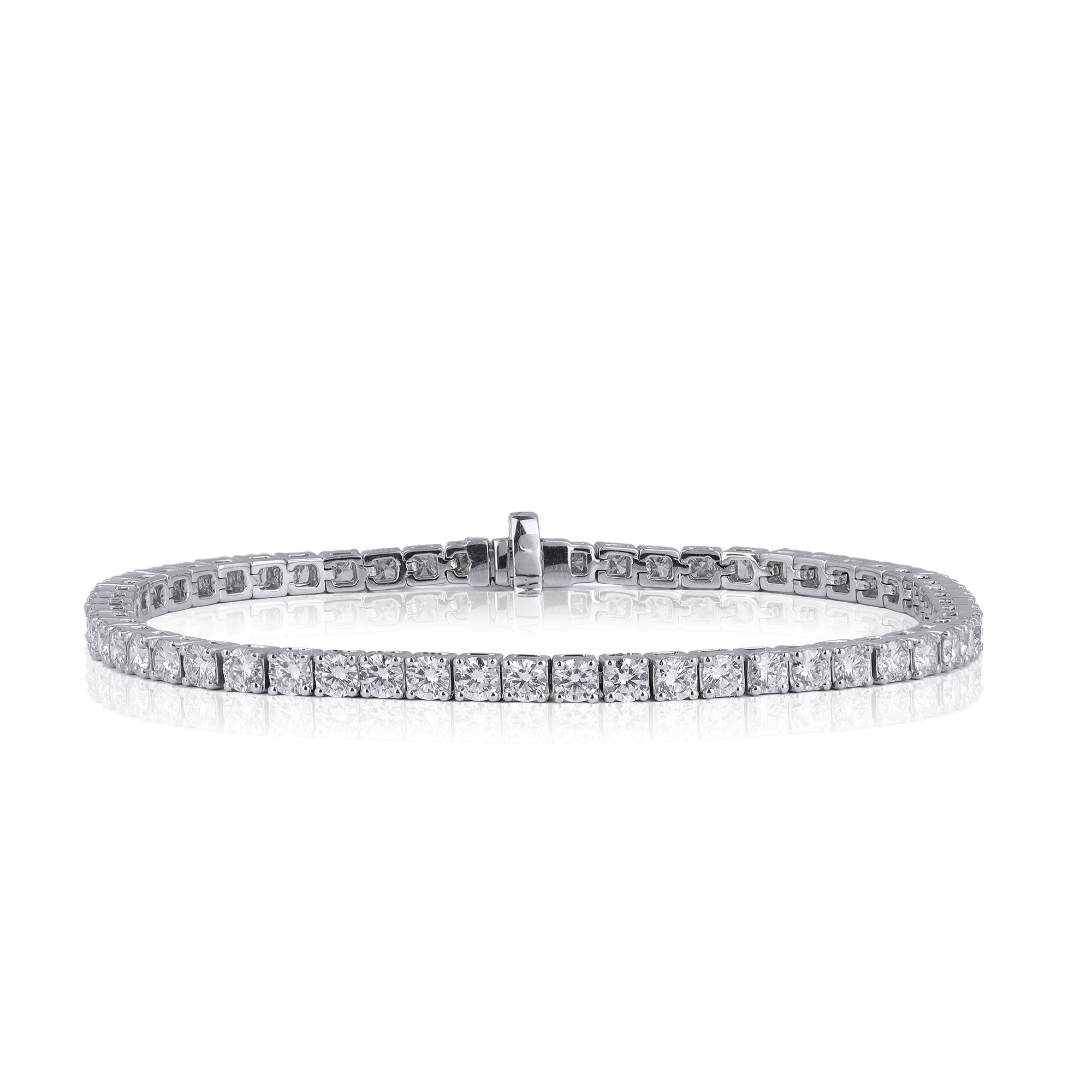 Round Solitaire Diamond Tennis Bracelet in White Gold, a timeless statement piece that epitomizes sophistication and luxury. Crafted with precision and finesse, each round solitaire diamond sparkles effortlessly against the lustrous backdrop of white gold, creating an aura of elegance.