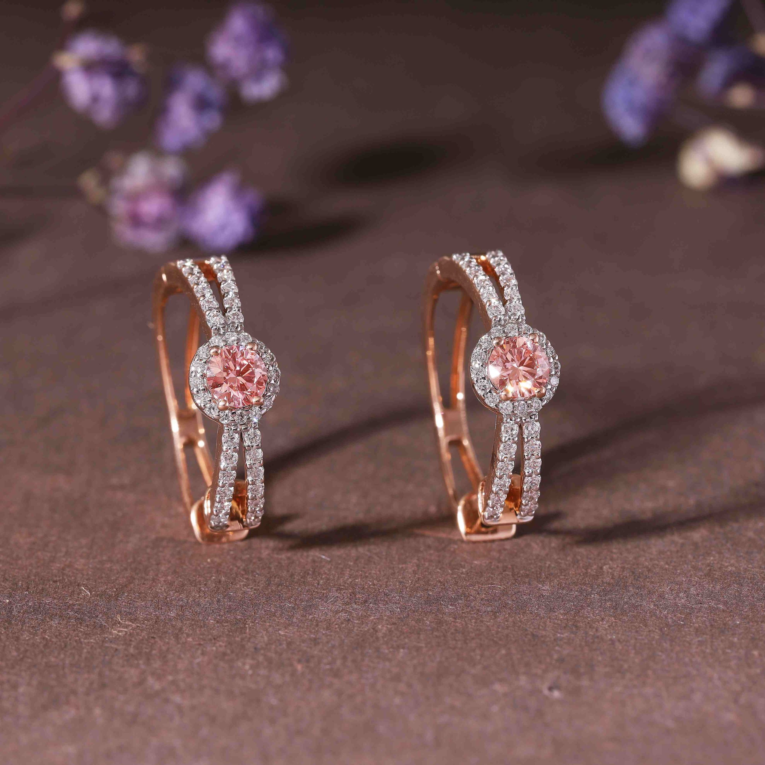 Sparkles Hoop Earrings, featuring a mesmerizing blend of round pink and white diamonds. Crafted to perfection, these hoops embody elegance and glamour with every shimmer.