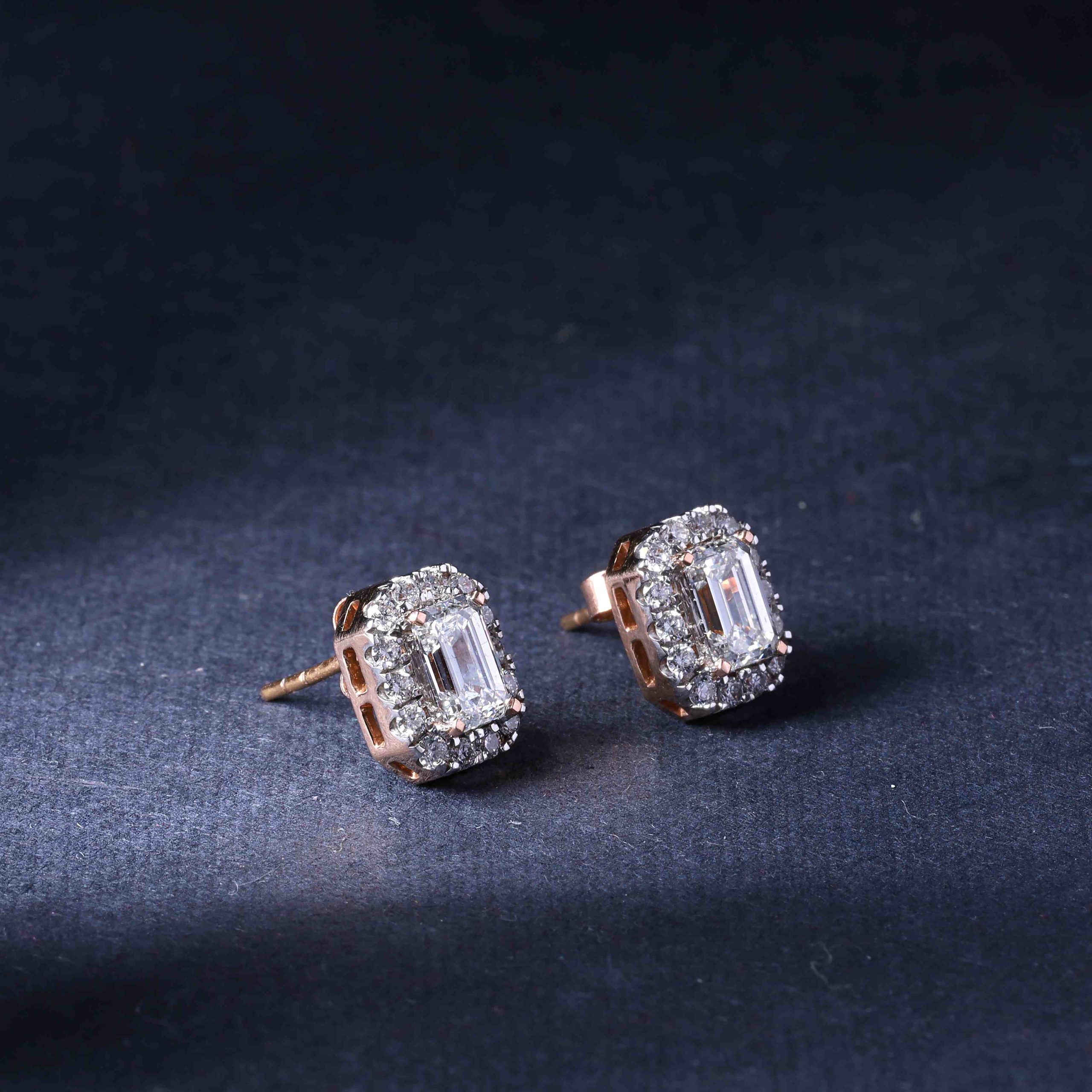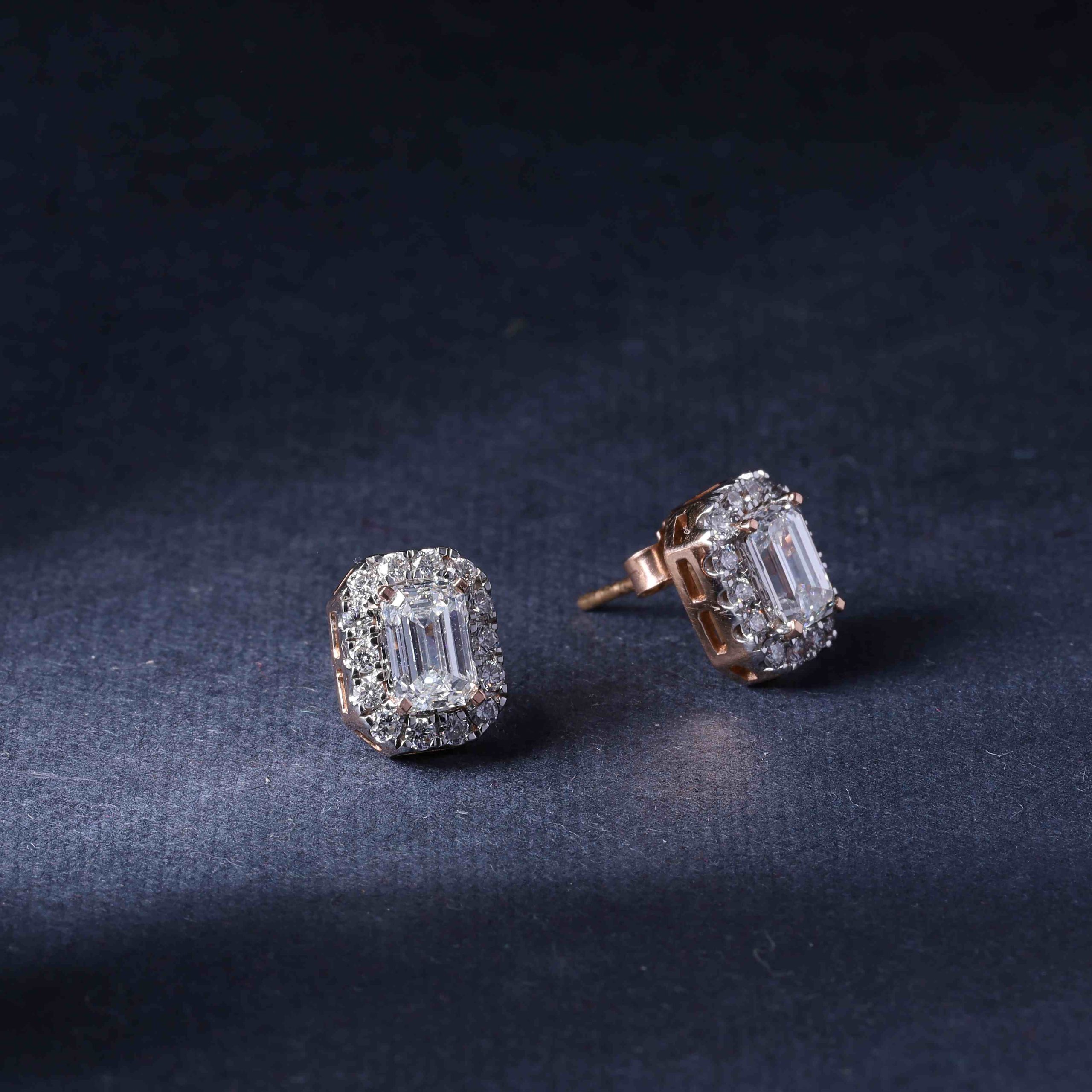 Classic Emerald Diamond Ear Studs, exuding timeless sophistication and grace. Crafted with exquisite emerald-cut diamonds, these studs are a symbol of enduring elegance and refinement.