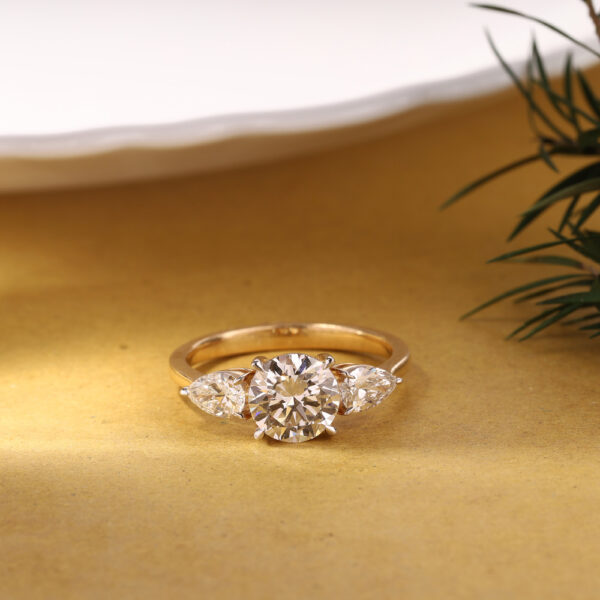 A classic round solitaire engagement ring, featuring a single, stunning round diamond elegantly set in a simple yellow gold band, embodying timeless beauty and a refined, sophisticated style.