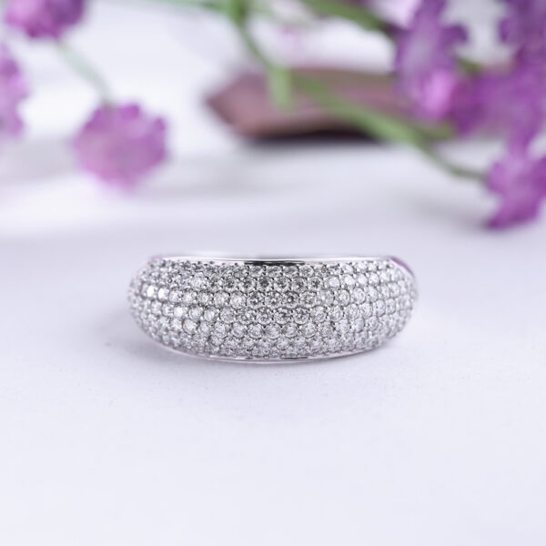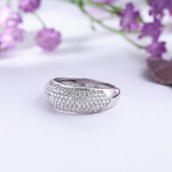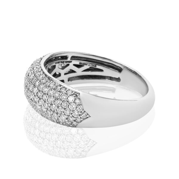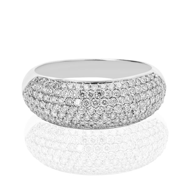 This beautiful cocktail ring features a constellation of small, sparkling diamonds set in polished white gold, offering a dazzling display that complements any evening attire with sophistication and glamour.
