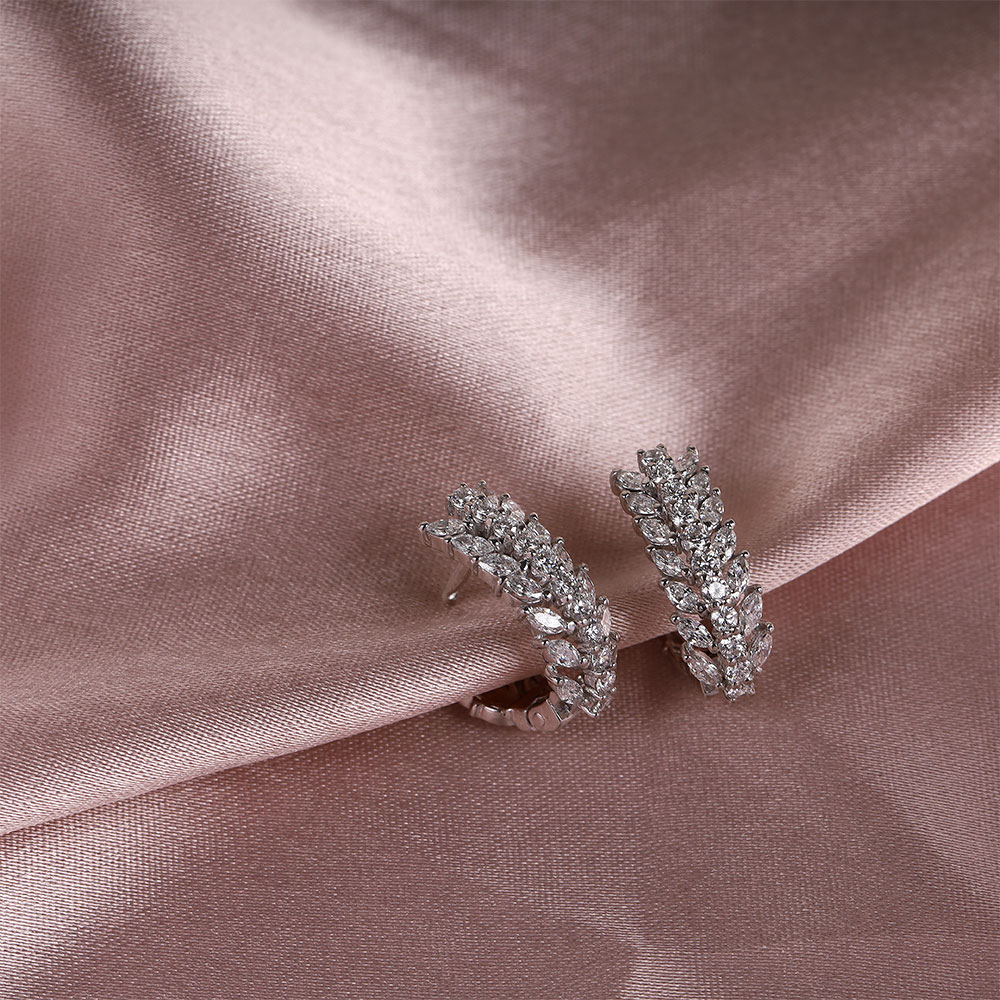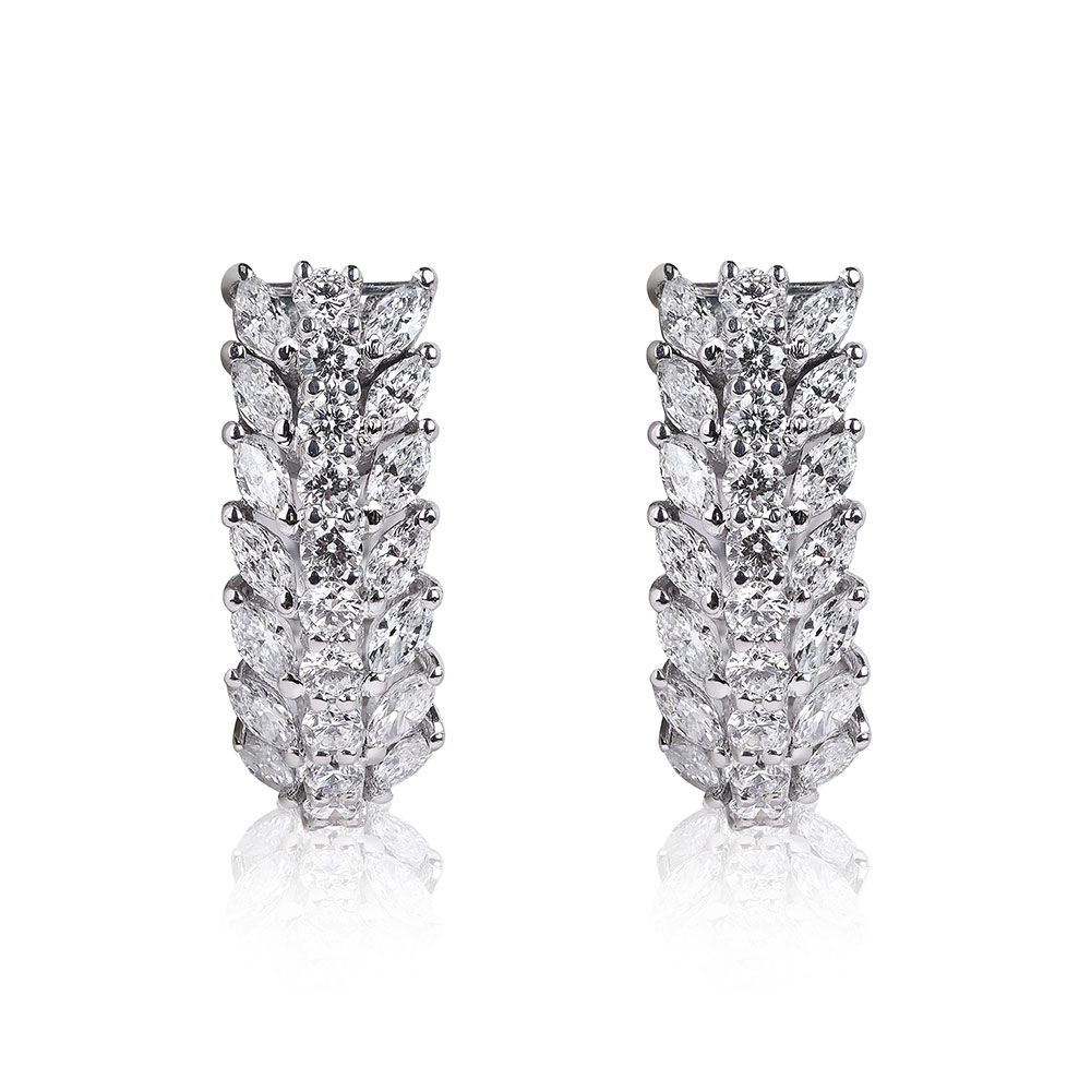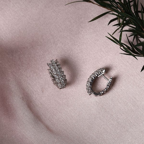 Marquise Diamond Hoop Earrings in Gold – a modern interpretation of engaging style. These earrings showcase marquise-cut diamonds delicately adorning sleek gold hoops, creating a harmonious fusion of sophistication and trendiness. With their chic design, these earrings make a stylish statement for any occasion, combining classic elegance with contemporary allure.