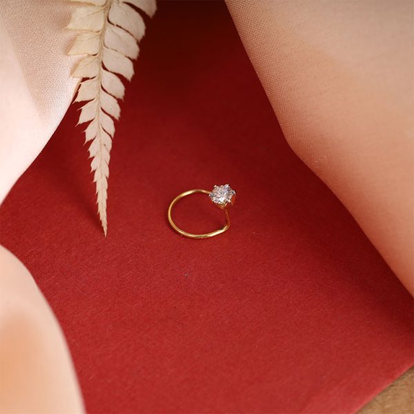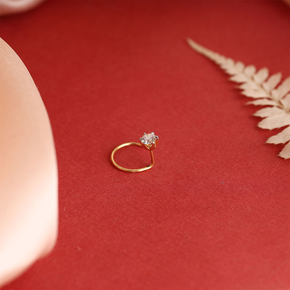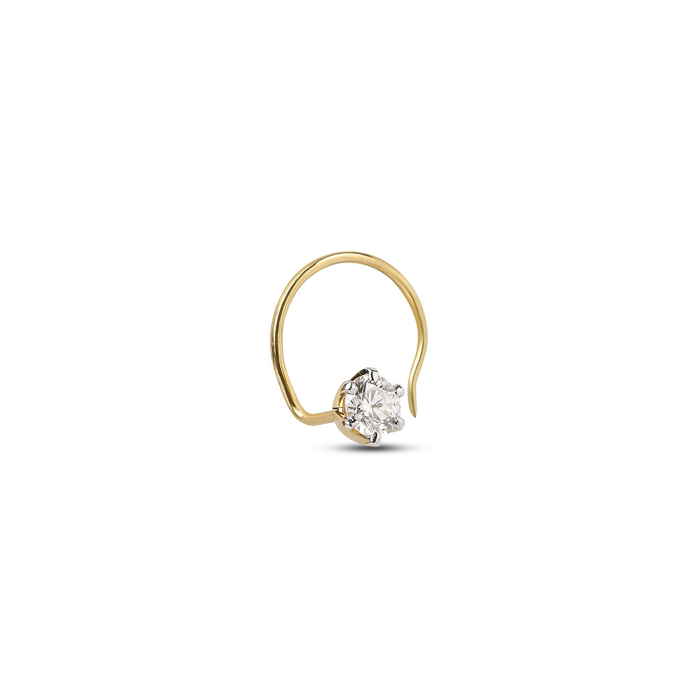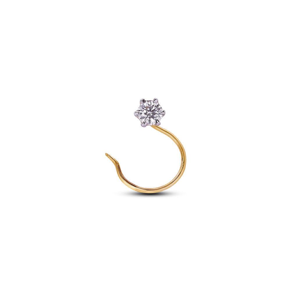 Round Brilliant Diamond Nose Pin in Gold – a delicate and enchanting accessory. This piece showcases a single round diamond delicately set in radiant gold, adding a subtle sparkle that enhances your inherent beauty. With its understated elegance, this nose pin effortlessly brings a touch of glamour to your look, celebrating the timeless allure of simplicity.