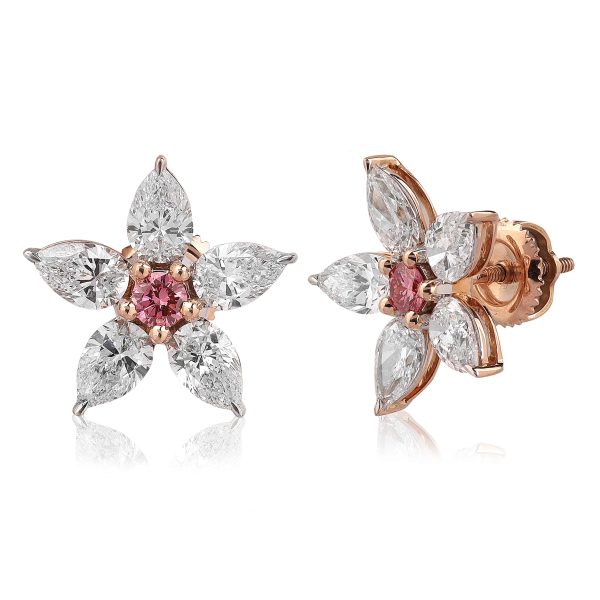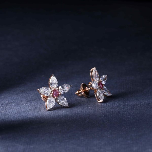 Marquise and Round Diamond Flower Design Earrings. Inspired by nature’s beauty, these earrings feature a captivating floral arrangement crafted with marquise and round-cut diamonds.