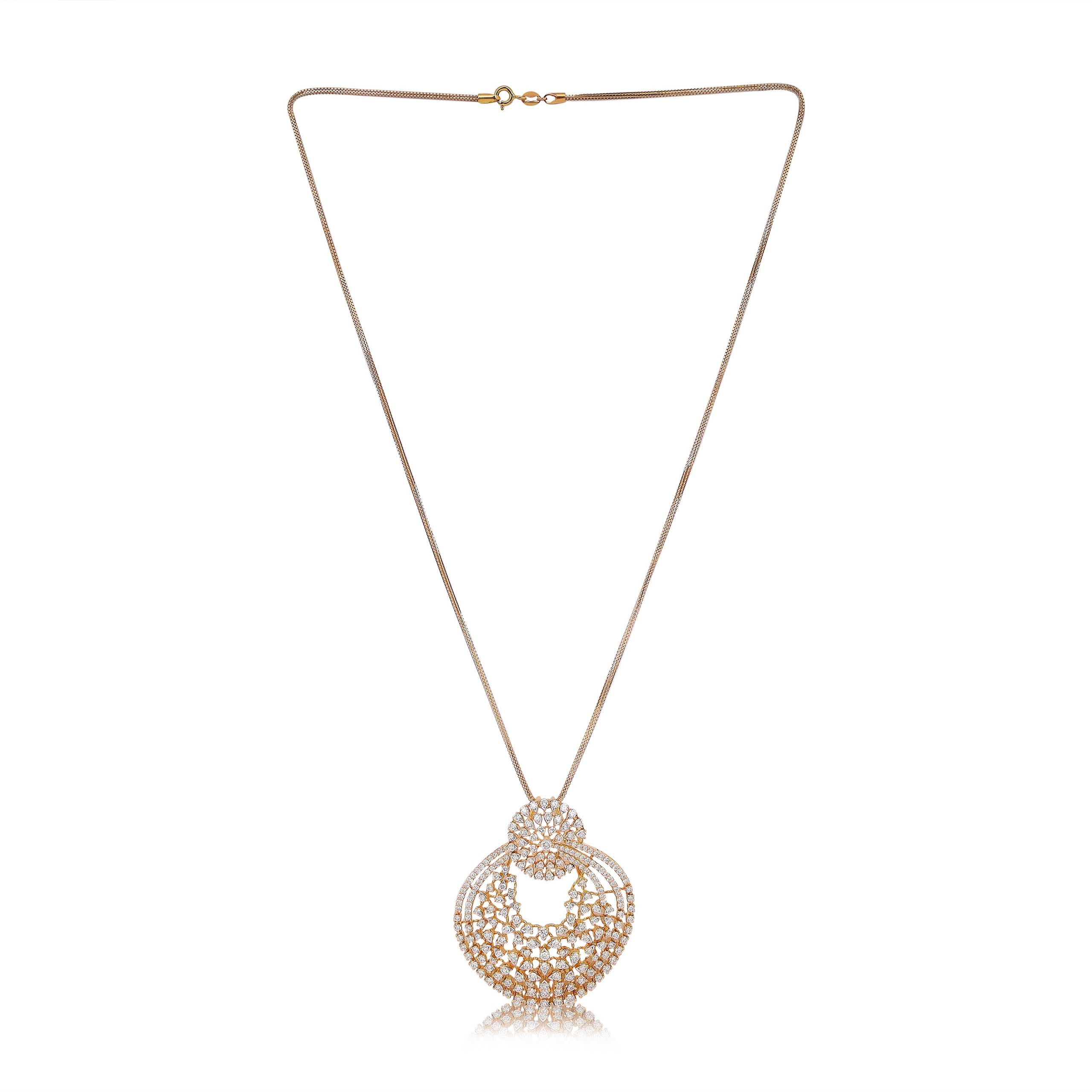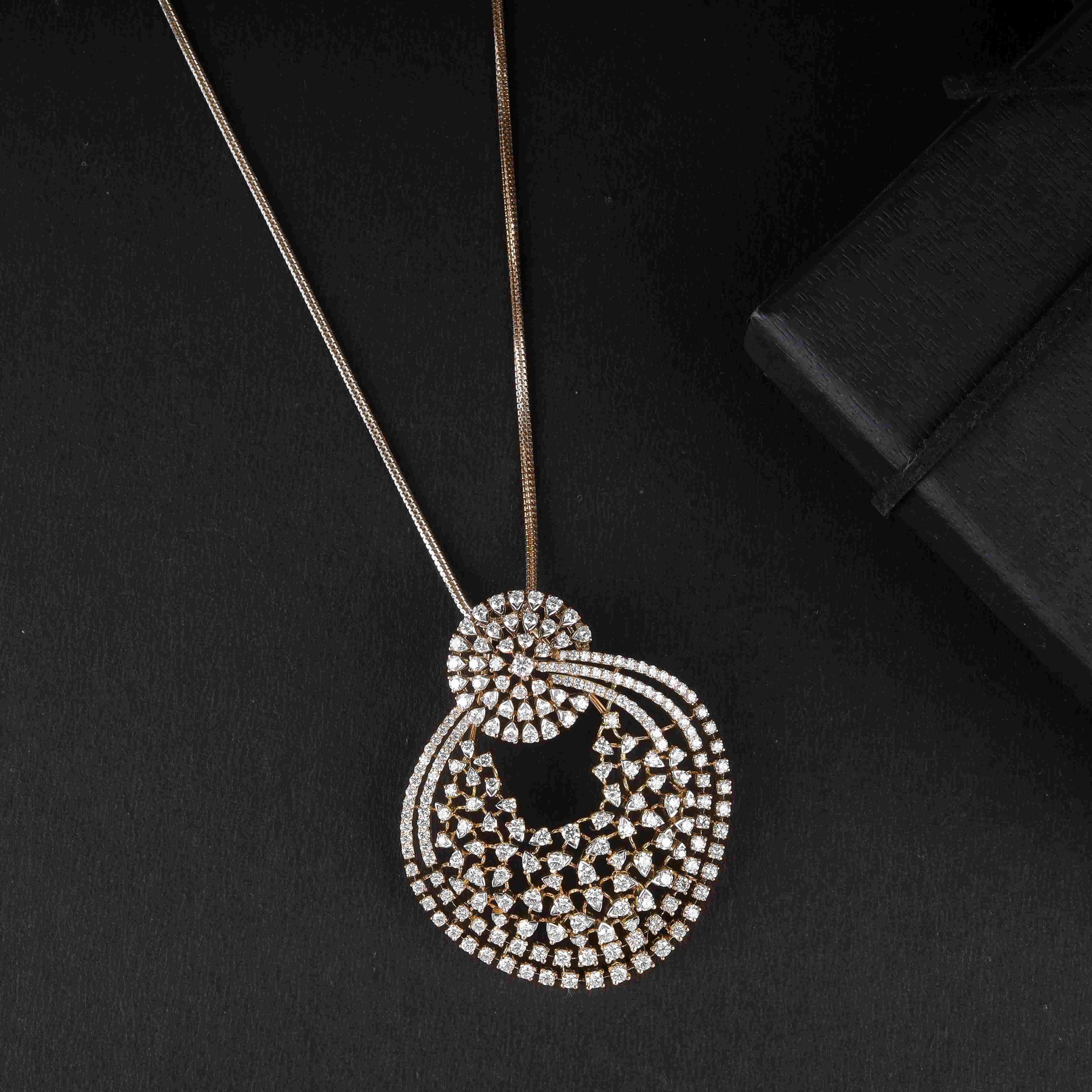 Classic Pear and Round Diamond Pendant, nestled in radiant yellow gold. This pendant exudes sophistication with its graceful pear and round-cut diamonds, making it a perfect accessory to elevate any ensemble.