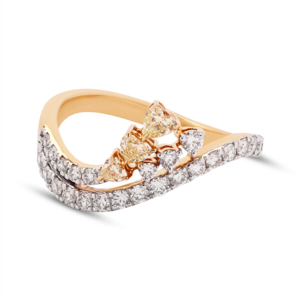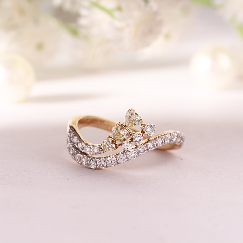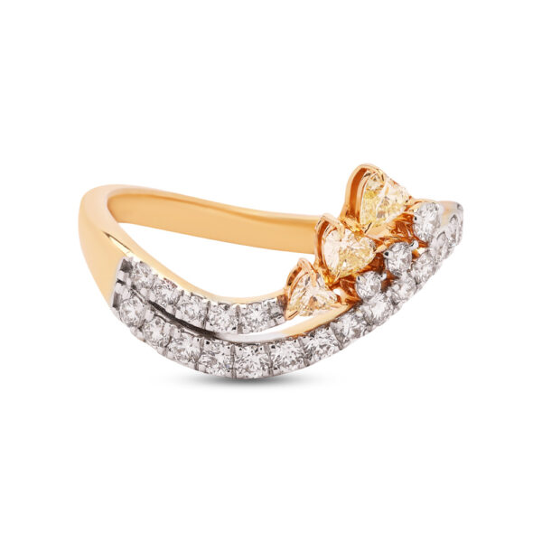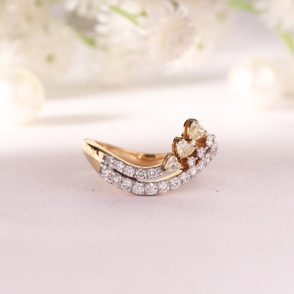 A charming ring combining small round and heart-shaped diamonds set in yellow gold, offering a whimsical and romantic design that captures the heart’s desires with its gentle sparkle.