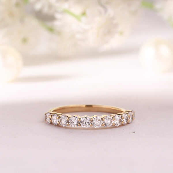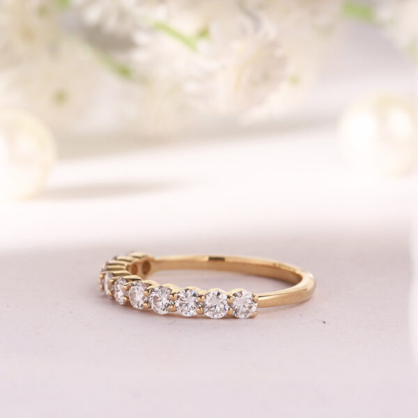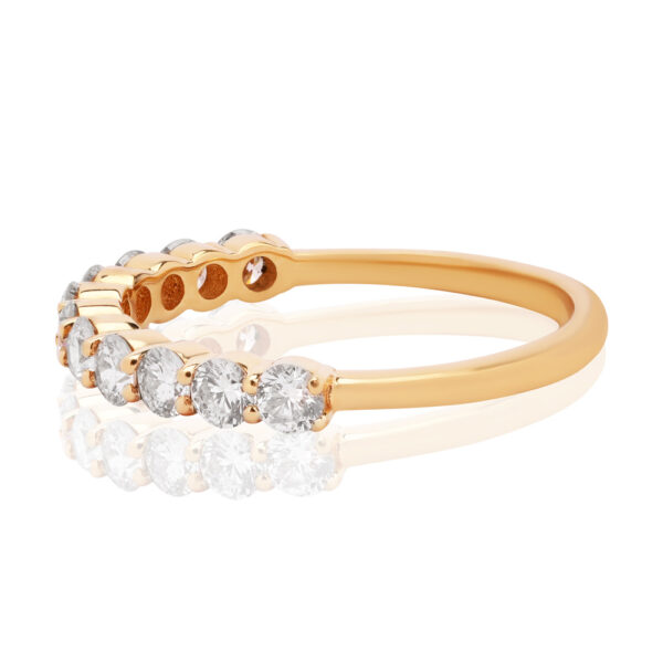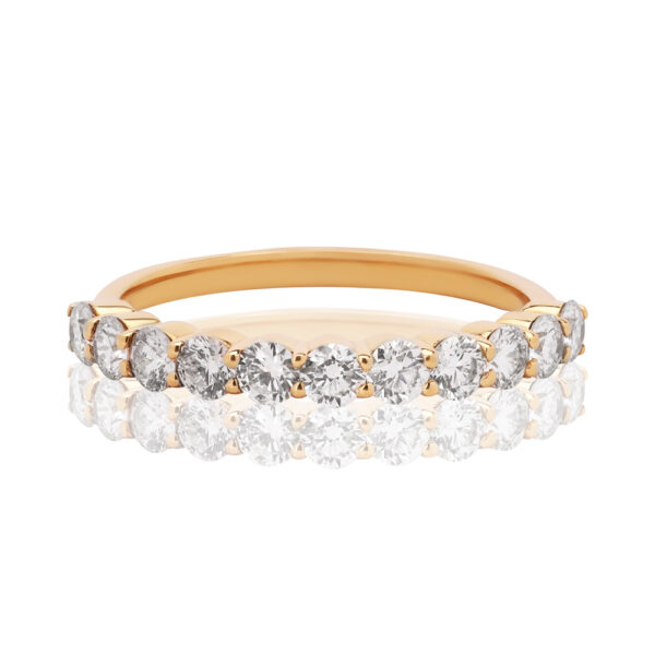 A chic square band ring in yellow gold, topped with round brilliant diamonds that add a touch of sophistication and timeless appeal to this modern, geometric design.
