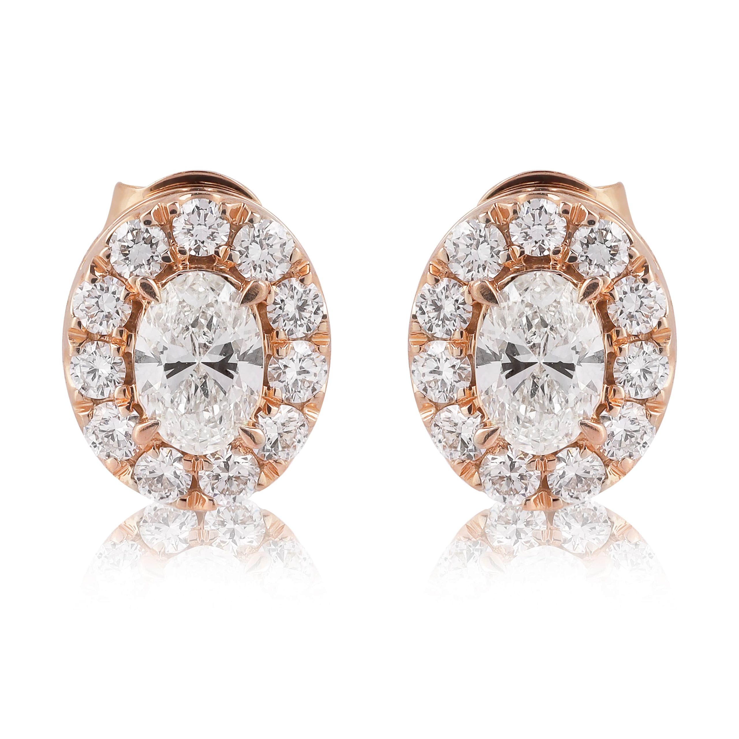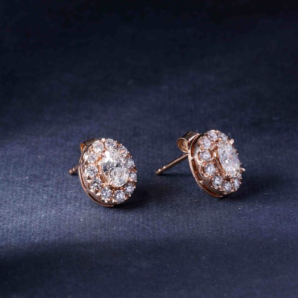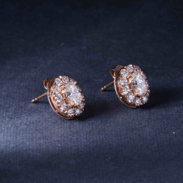 Oval and Round Diamond Stud Earrings, elegantly set in luxurious rose gold. These studs redefine elegance, combining the sleek oval shape with the timeless brilliance of round-cut diamonds.