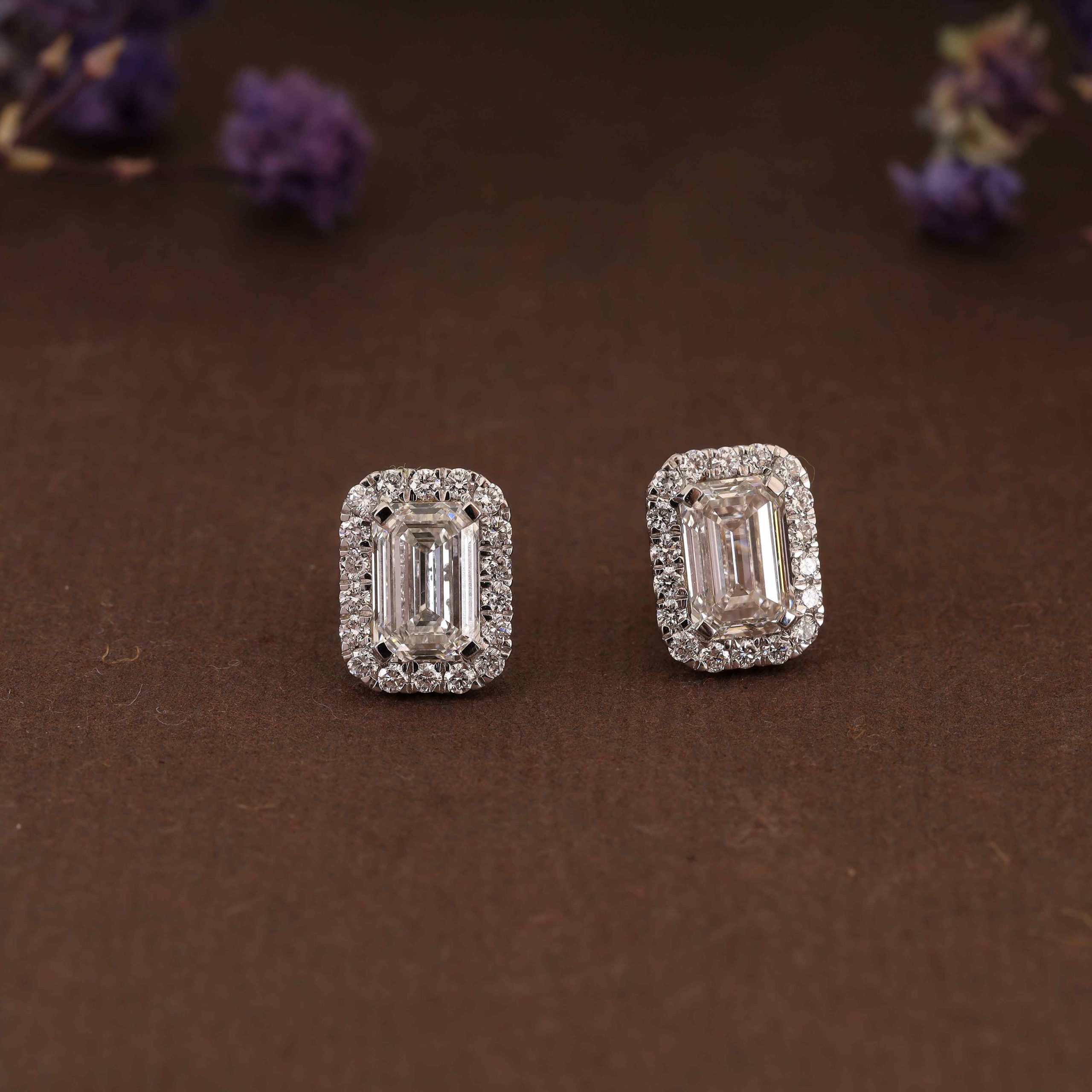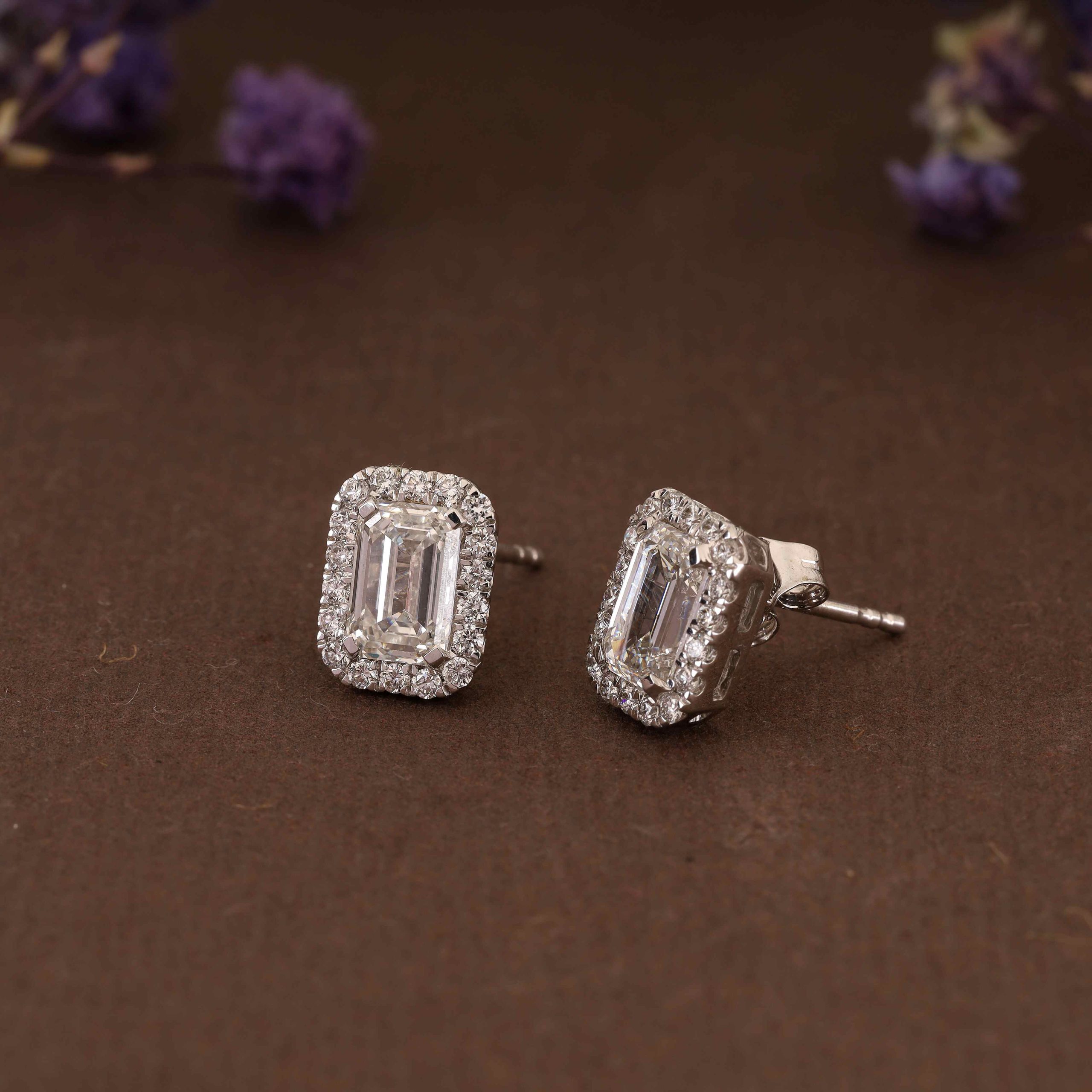 Emerald Diamond Evergreen Earrings, a symbol of eternal beauty and grace. Crafted with exquisite white emerald-cut diamonds, these earrings exude timeless elegance and sophistication, adding a touch of luxury to any ensemble.