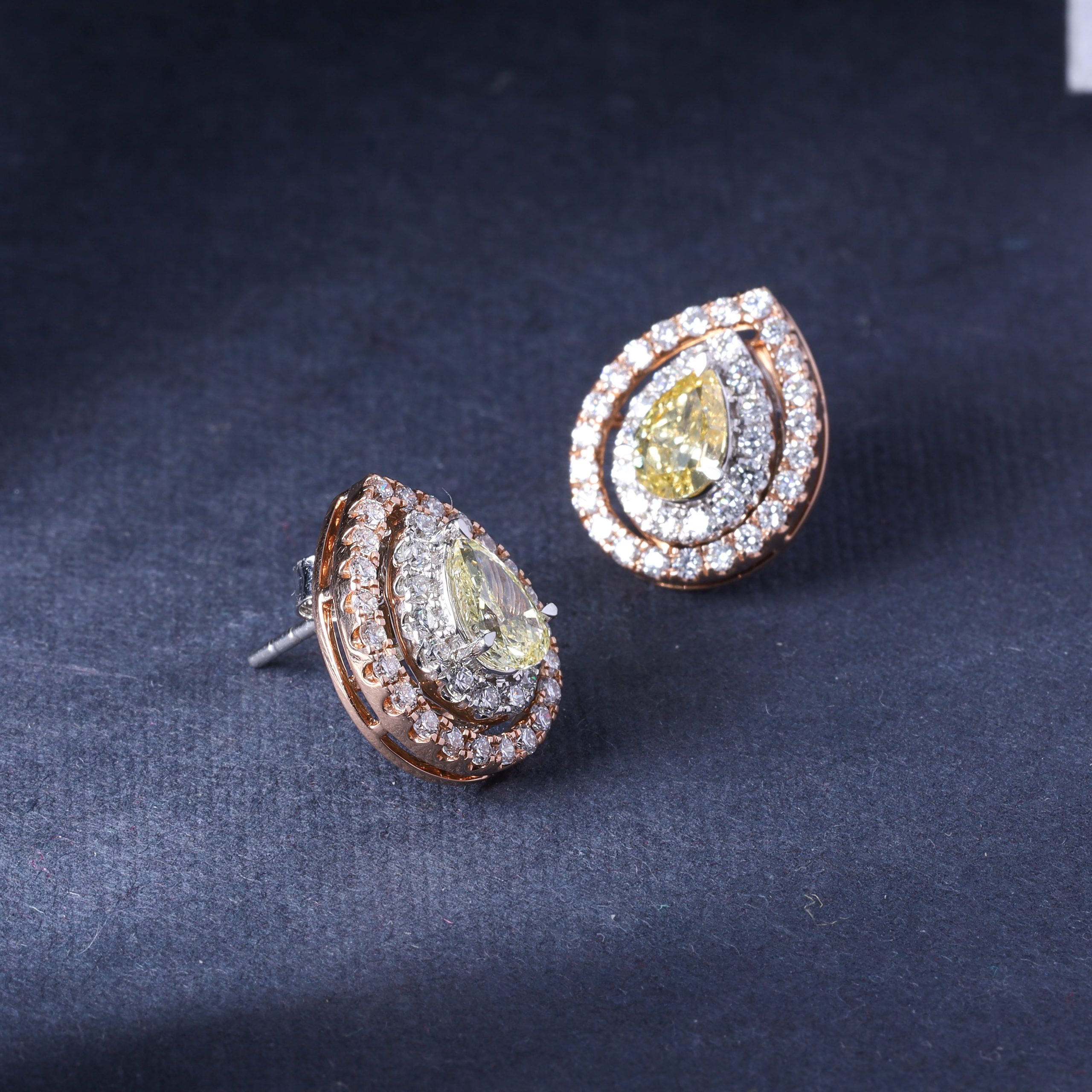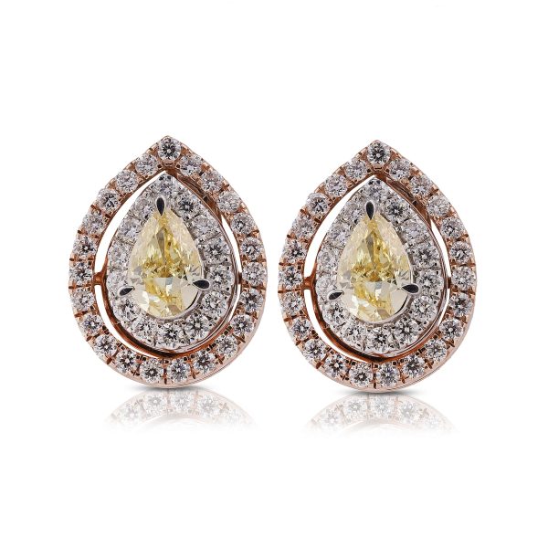 Pear-Shaped Yellow and White Diamond Beauty Earrings capture the essence of sophistication, combining the allure of yellow and white diamonds in a stunning pear-shaped design.