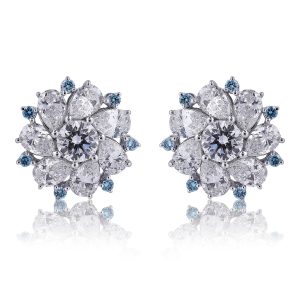 Round Diamond Flower Design Earrings