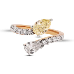 Ring with Oval, Pear-Shaped Diamonds in Gold